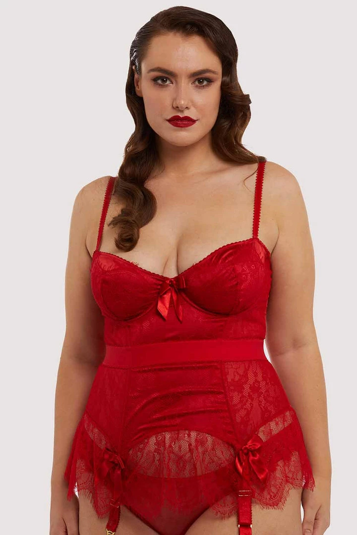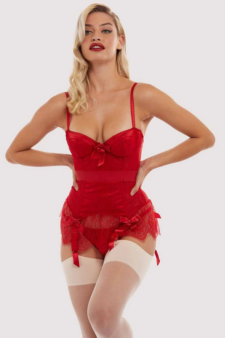 Bettie Page Lingerie Basques & Corsets Red Tempest Lace Basque With Bows