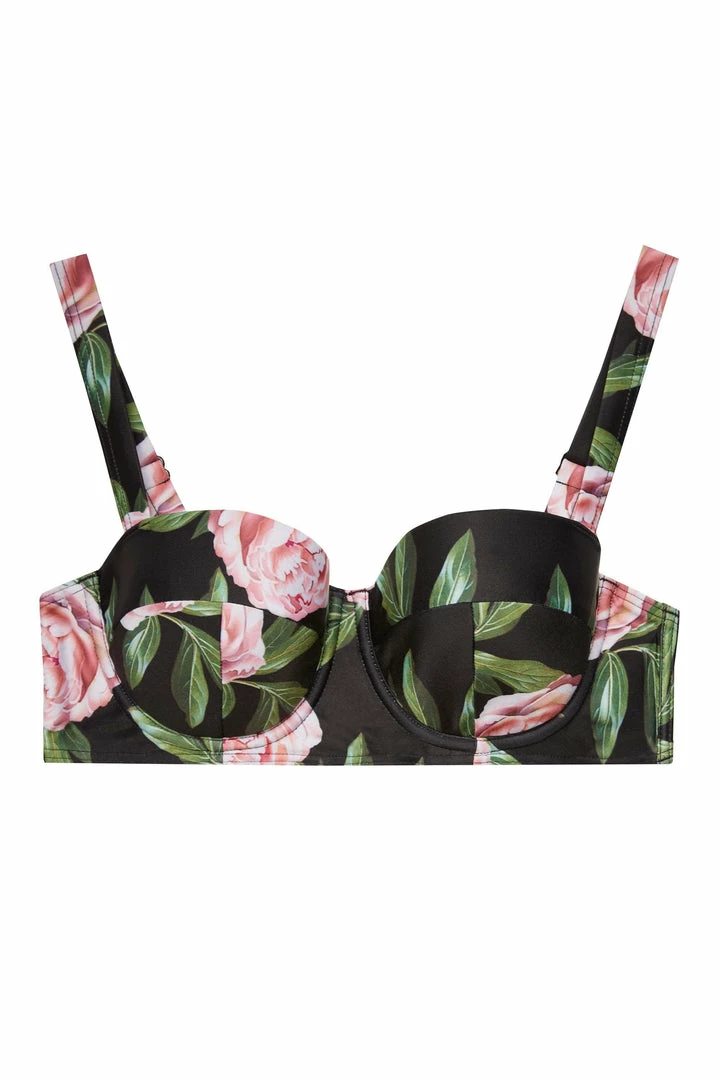 Add some feminine feels to your beach look, this 50s inspired bikini has that perfect vintage pin-up vibe. The Bettie Page swimwear collection is designed to accentuate your curves with classic silhouettes. The Claudette bikini features padded cups for extra support, pink rose pint and black hardware.