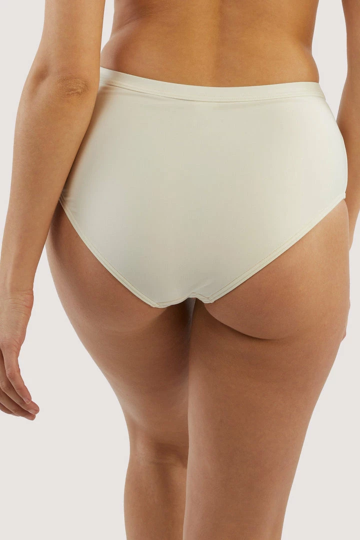 Simple in design but sure to have you sizzling, this 50s inspired white bikini has that perfect vintage pin-up vibe. The Bettie Page swimwear collection is designed to accentuate your curves with classic silhouettes. The Honey swimsuit features a sweetheart neckline, gold buttons and ruched front detail. Pair with the matching top to complete the look.