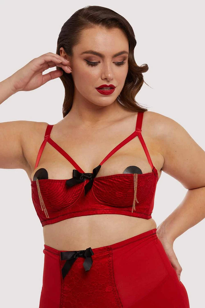 Bettie Page Lingerie Red Elsie Lace Quarter Cup Bra