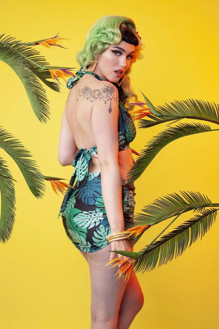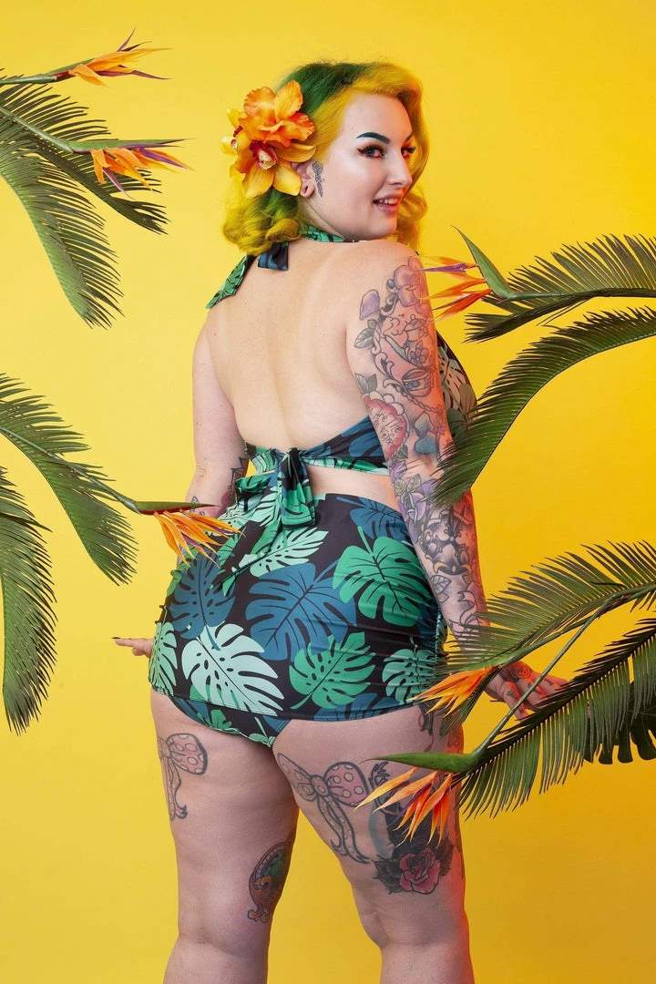 The Green Palm Skirted Brief is inspired by swaying palm trees and banana leaves, transporting you to a tropical paradise!