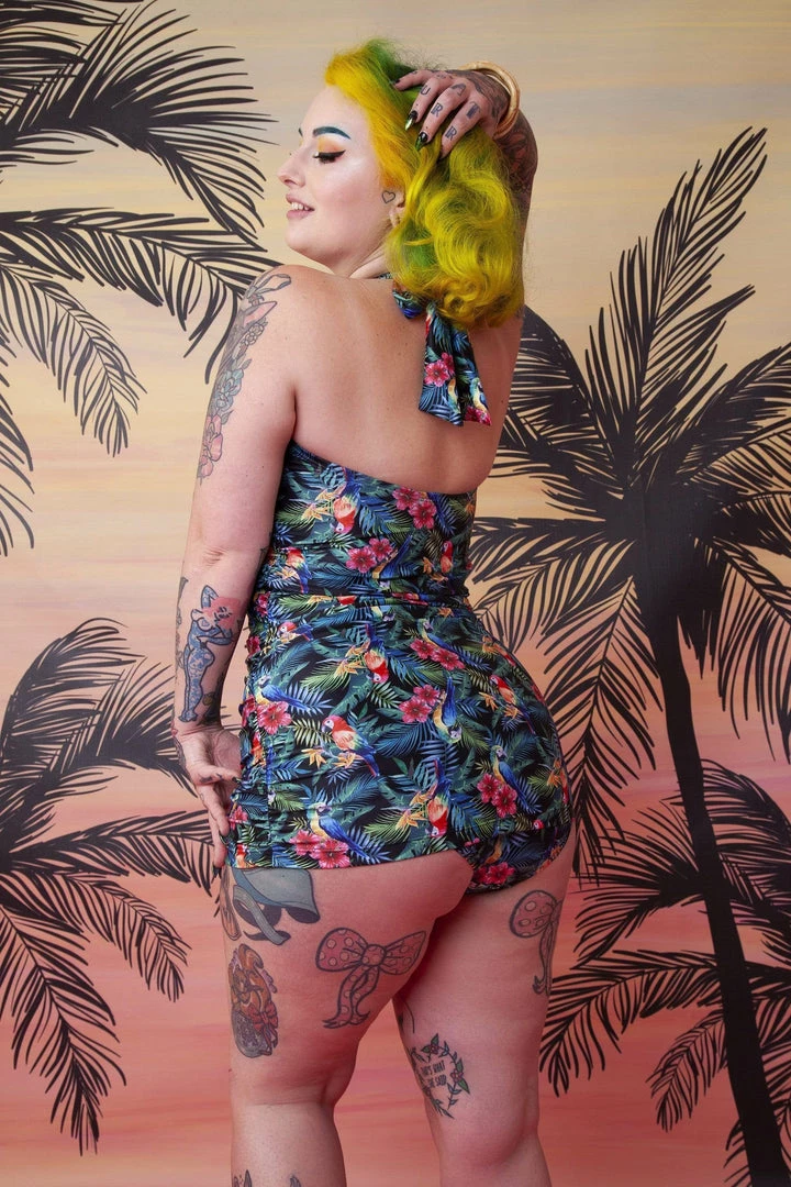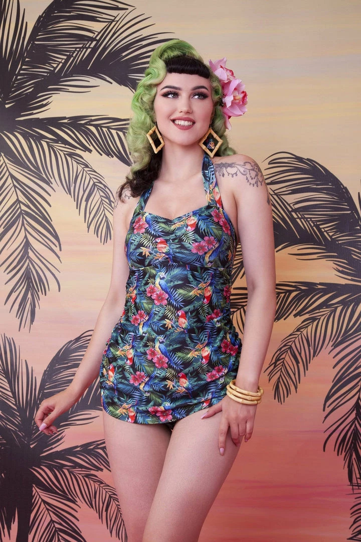Transport yourself to a tropical island in the Jungle Balcony Swimsuit!