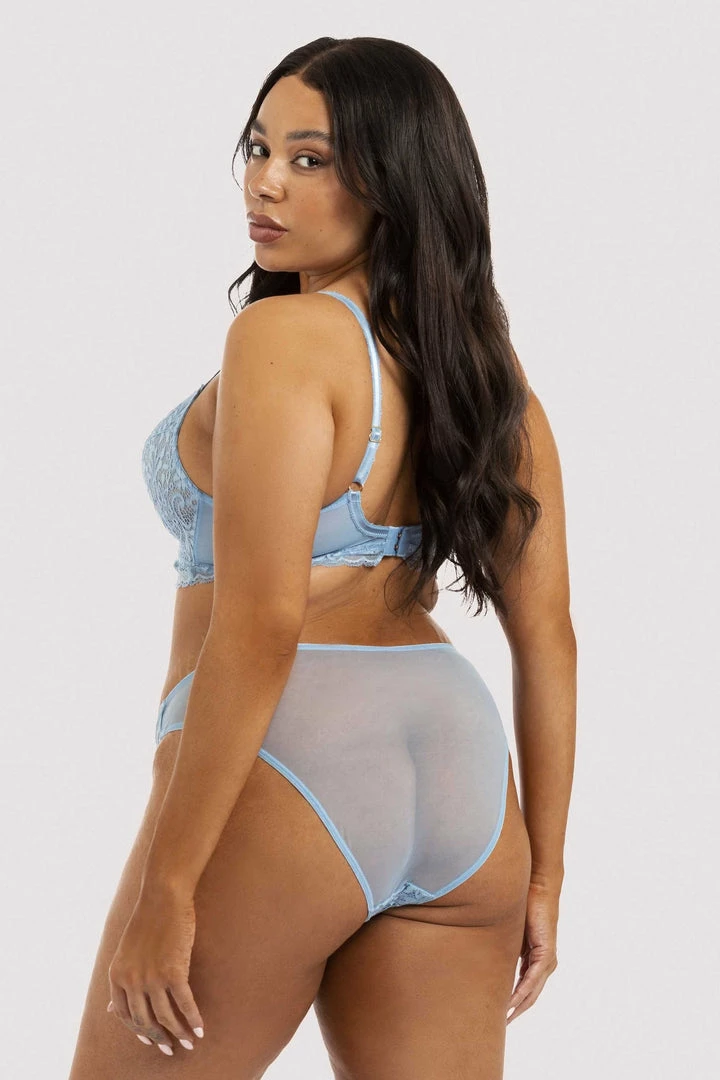 The Lavender Emma Highwaist Briefs are the ultimate comfort for every day. With pretty lace detailing at the front and sheer mesh panels on the hips and the back they are subtle but sexy. The highwaisted design is perfect for hugging your curves. Match with our Emma Bra for the perfect everyday look.