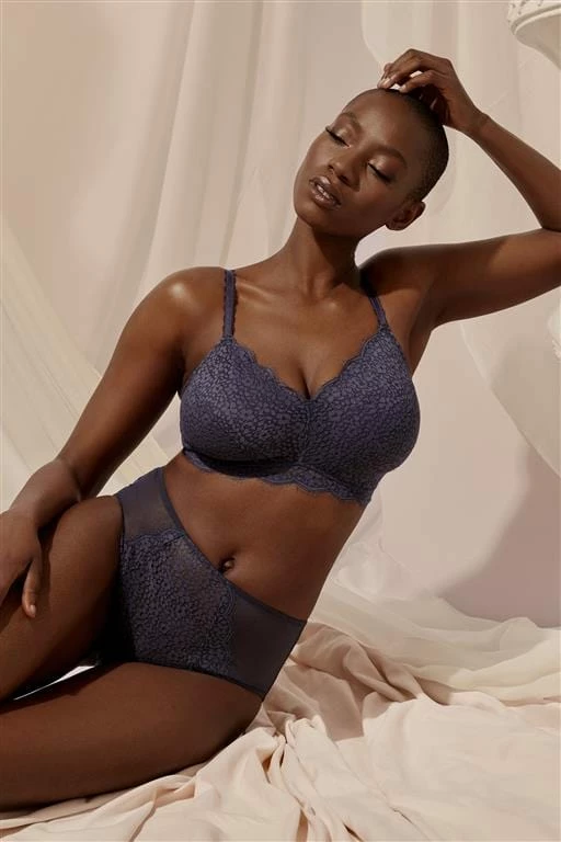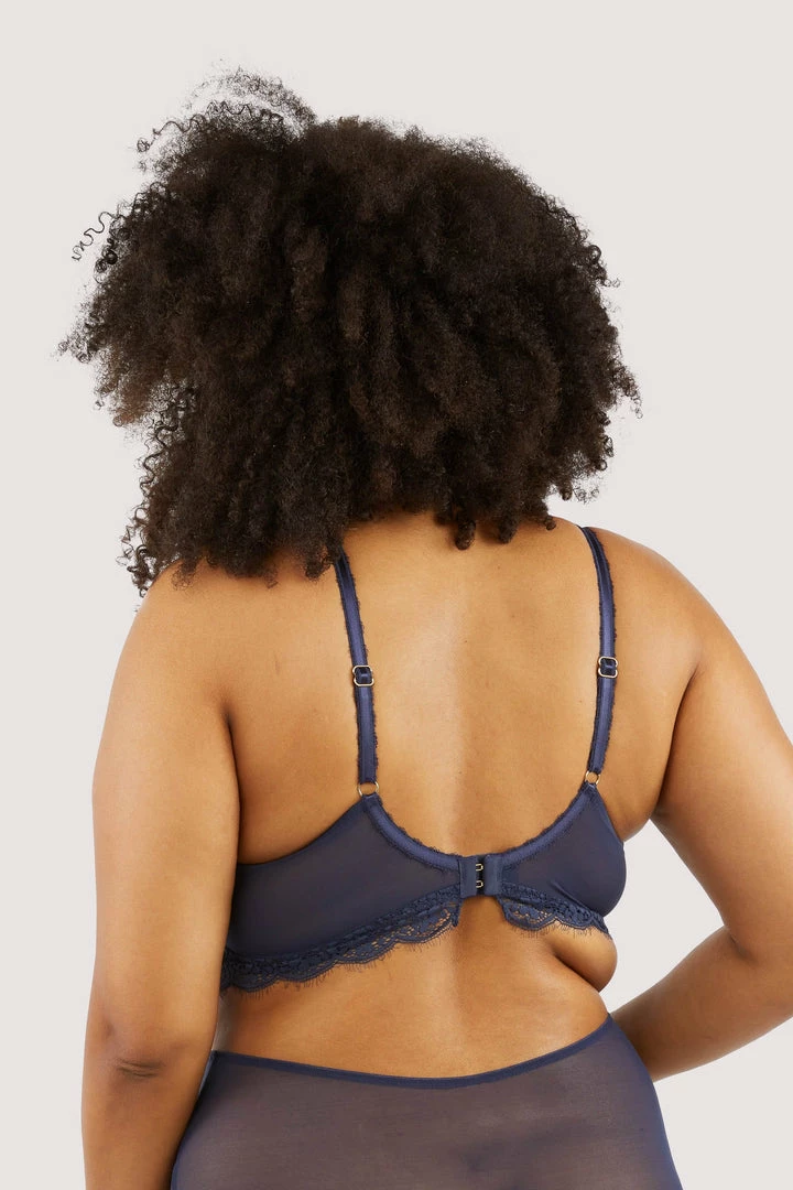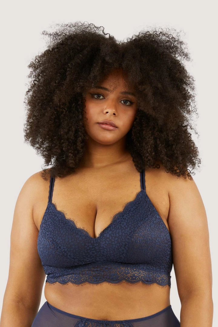 The Emma Navy bra is the ultimate comfort for every day. With no underwire, soft lace and a supportive mesh lining, this bralette is designed to support by hugging your curves. This is the perfect everyday bra, for the full look, match with our Emma Brief or Highwaisted Briefs.