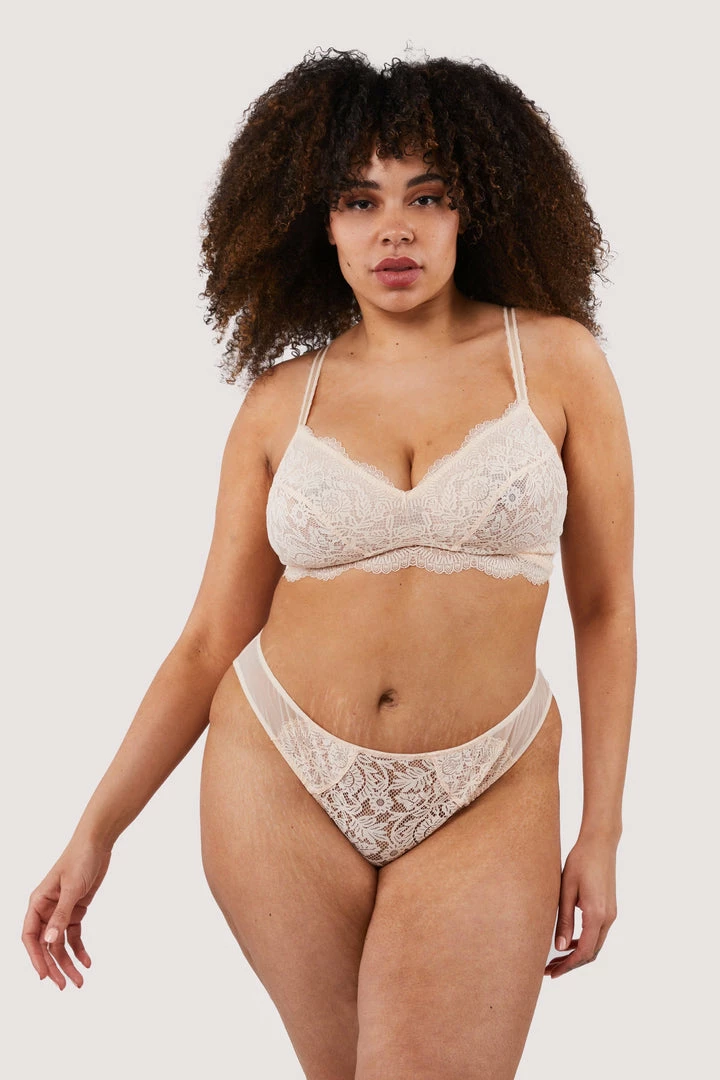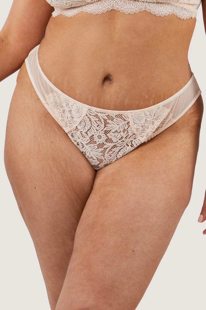 The Emma Pearl Briefs are the ultimate comfort for every day. With pretty lace detailing at the front and pearly pink sheer mesh at the back these are the perfect briefs to hug your curves. Match with our Emma Bra for the perfect everyday look.