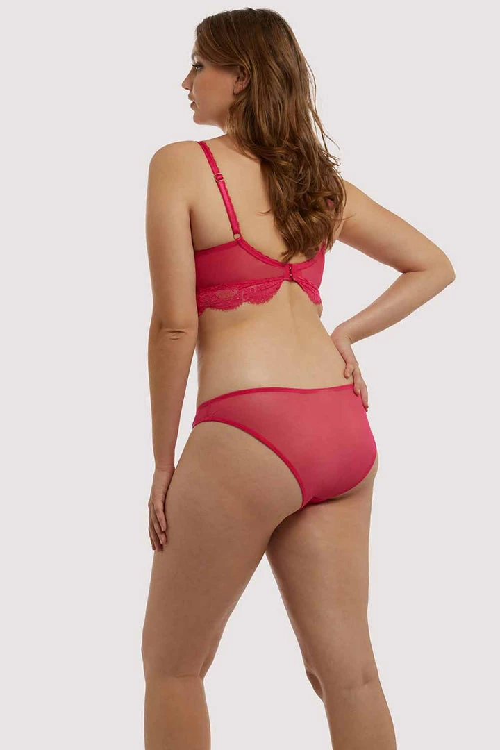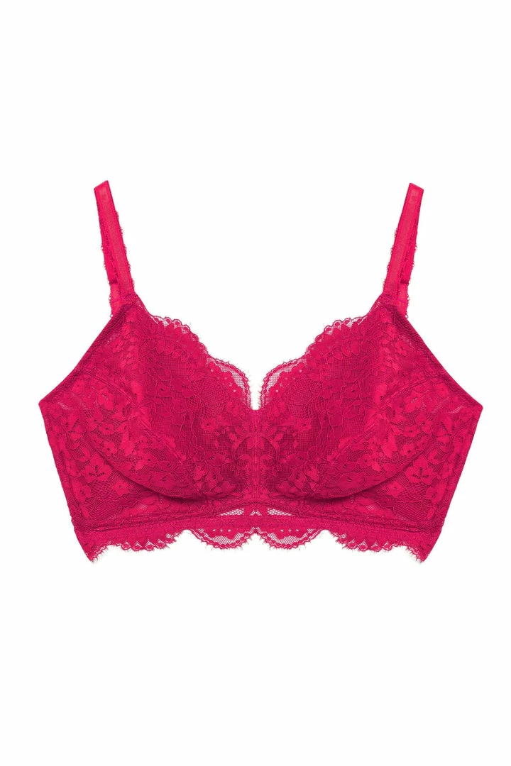 The Pink Emma Wireless Bra is the ultimate comfort for every day. With no underwire, soft lace and a supportive mesh lining, this bralette is designed to support by hugging your curves. This is the perfect everyday bra, for the full look, match with our Emma Brazilian or Highwaisted Briefs.