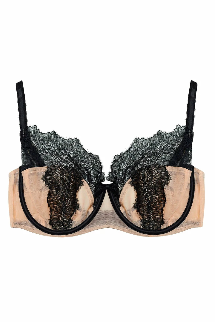 Get racy in Rosalyn, this classic soft lace bra is underwired with full support and coverage. It features sheer mesh blush cups with a black lace overlay. Match with the Rosalyn Brazilian Brief or Thong for the full flirty finish.
