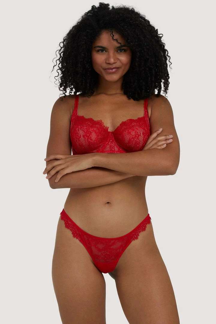 Get racy in Rosalyn, this classic Thong features a red lace centre with red lace on the hips and at the back to hug your curves. Match with the Rosalyn Bra for the full flirty finish.
