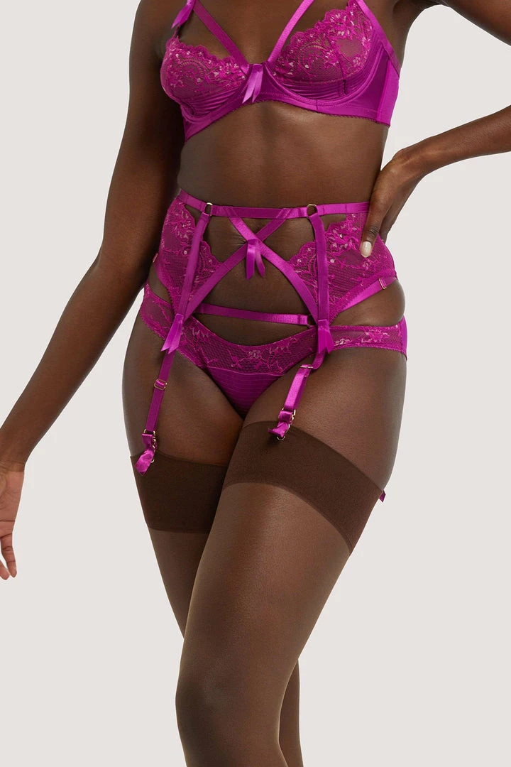 Madame X is a sexy, dramatic lingerie . The suspender in this collection is a strappy, sexy garment. With highlights of lace and strap details, this suspender has 4 garter attachments. This suspender completes a true retro glamour look.