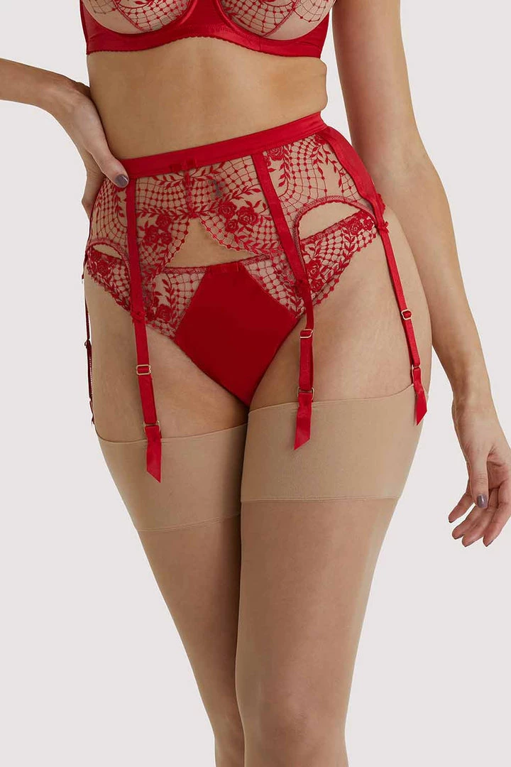 Julies Roses suspender features a rich Red embroidery and Red stretch tulle. 6 garter attachments fro additional stability.