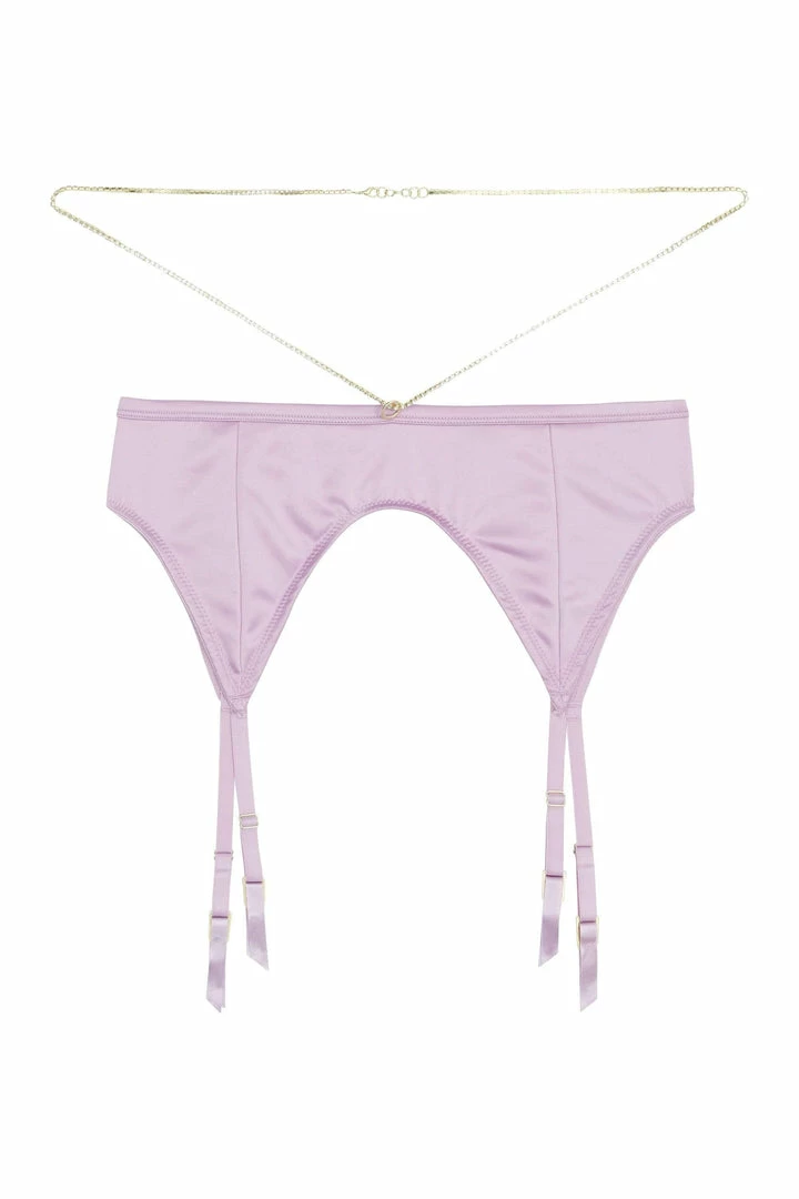 Knox is here and is a force to be reckoned with! The bold lilac satin and beautiful naturally curved shapes defy expectations, letting you express yourself through your lingerie. Kelly Knox has always been a strong, powerful figure – channel some of that energy with this luscious lilac lingerie set! The suspender belt has a soft satin touch and is the perfect way to show off more chains and keep those stockings up all day.