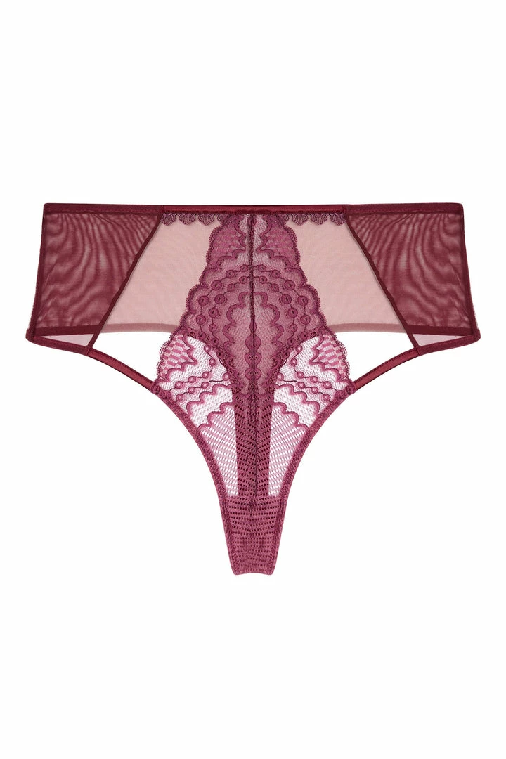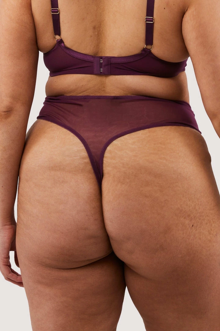 Introducing another exciting collaboration with UK model and body positive activist, Felicity Hayward! A work of art. Have you ever seen a more intricately detailed set than the Astrid? This sultry merlot coloured brief features a sheer stretch mesh and lace, satin piping and side panels, and a fully mesh back. Match with the bra and suspender for a stunning set.