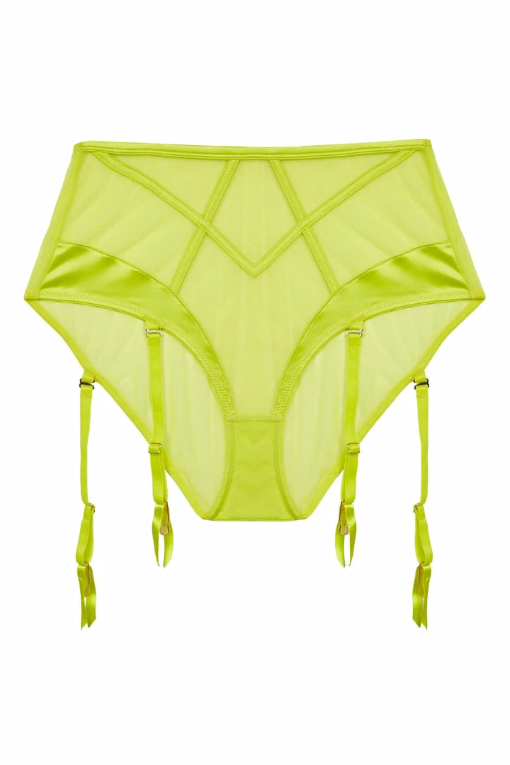 The Nahli looks too good to be hidden! Featuring a strutched panelled design in vibrant lime satin and mesh. Pair with the matching bra to complete the look