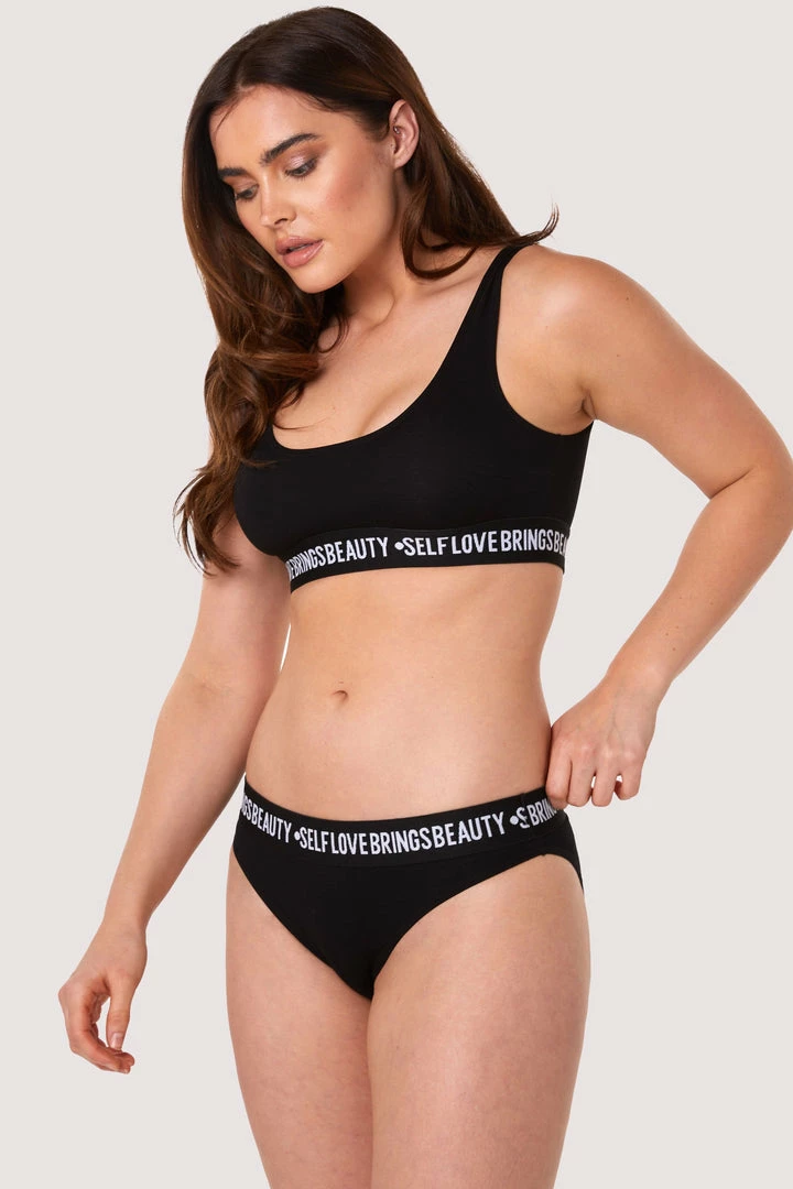 Made for pure comfort and everyday use, the Self Love sports set is adorned with Felicity’s championing statement “Self Love Brings Beauty” to keep you going through those hard times. Made from a delicate soft cotton, it’s the go to for any activity, whether it’s a coffee date or a Netflix date. The brief is a classic sports style made for comfort and ease throughout the day.