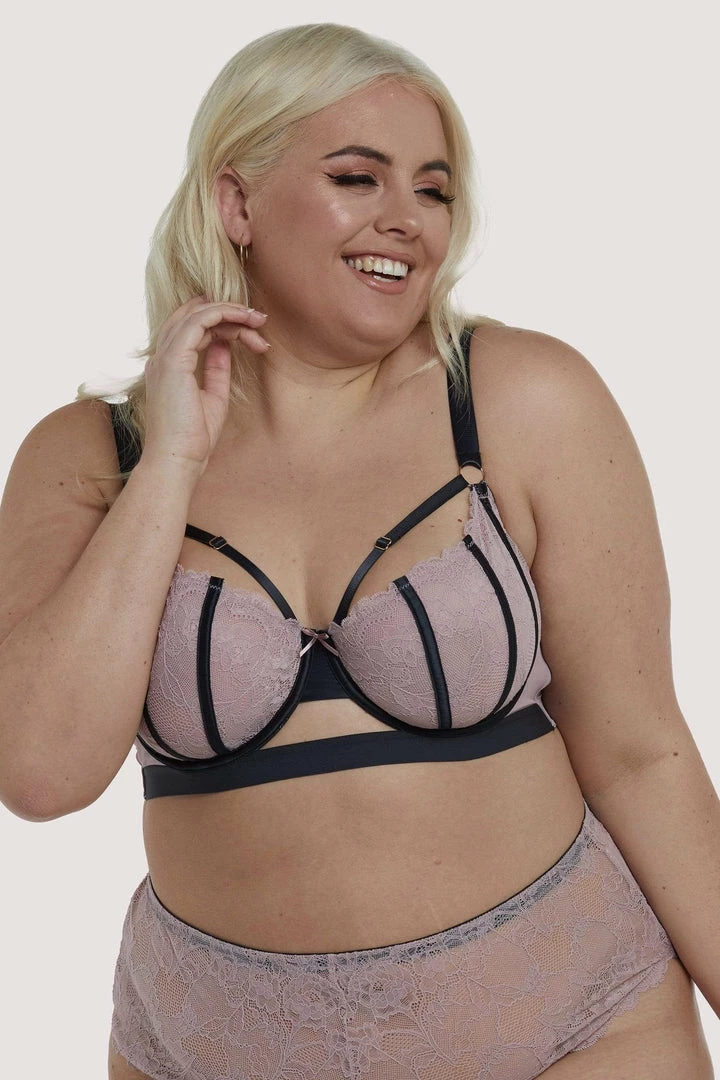 Simple, chic and sexy, this dusty-pink with navy contrast binding set is a classic addition to your lingerie-drawer! This muted colour-combination makes this the perfect everyday set. Navy satin contours the shape of the cup, enhancing it’s va-va-voom!