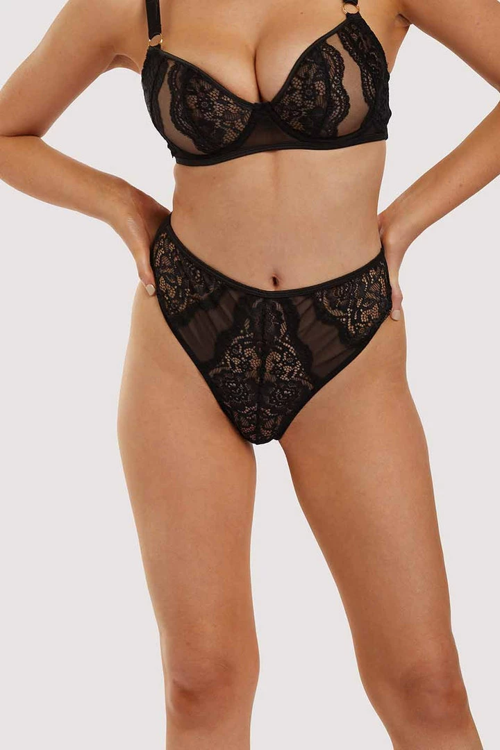 The Kay lace set is comfortable enough for everyday wear, yet sexy enough for seduction. Featuring mesh and lace panels and a flattering plunge neckline. Pair with the matching bra and suspender to complete the look