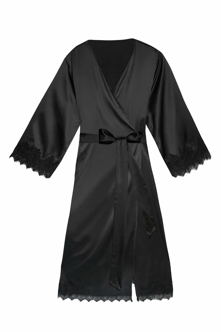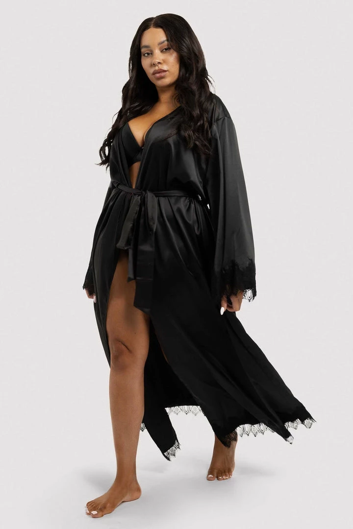 FFFB X Playful Promises Enyo Black Applique Lace & Satin Robe