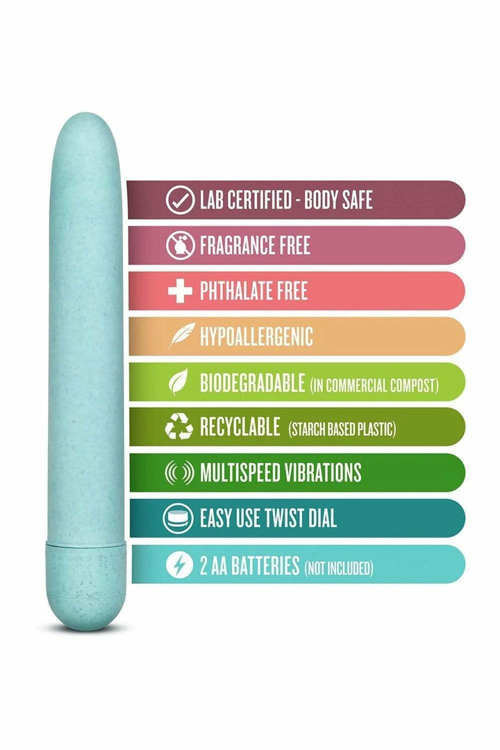 This pleasure-packed petite vibe is crafted from Biofeel, a plant-based material. Take comfort knowing that Eco uses less energy creates less greenhouse gas emission than any other sex toy on the market! The Eco’s design is classic and can be used for internal or external stimulation: including a slim profile and tapered tip for comfort. With quiet multispeed vibrations controlled by the twist of a dial, it’s easy to find your perfect sensation. This toy is body safe and easy to clean!