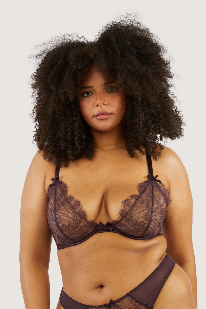 The Alvara is the perfect style to let out your firtatious side. Made from pretty plum lace this Bra is perfect for you. Featuring pretty bow accents for an ultra flirty look. Match with the Alvara thong for the full finish.
