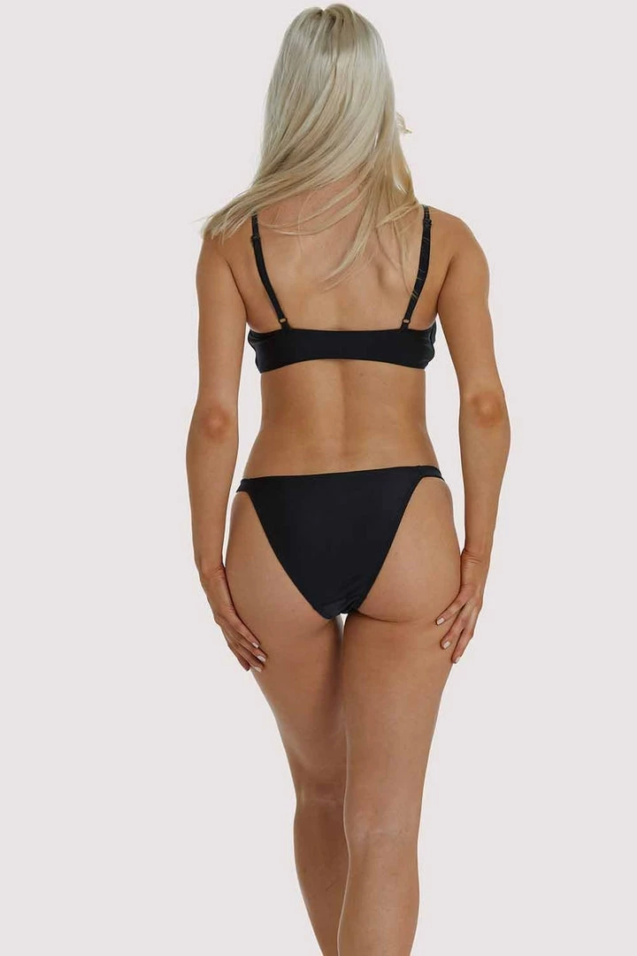 You can’t go wrong with a black bikini, featuring black fabric with a tanga style fit. Team these with the matching bikini top for the ultimate poolside look.