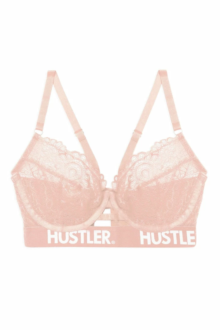 Stay pretty in pink with our Baby Pink Hustler branded Lace Bra. Made with flirty floral lace cups which are finished with an elastic band of Hustler branding to give it a preppy look! Pair it with the matching Lace Brief or Thong for the full finish.