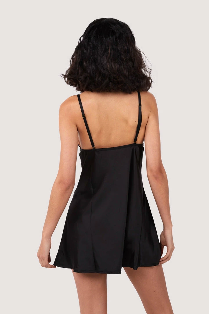 The Brooke chemise features soft mesh cups, giving a flirty peek of your décolletage, while the satin fabric skims over your body. Perfect for pairing with the matching thong, or nothing at all!