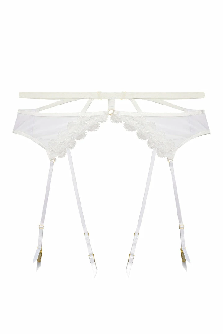 Hustler Esther White Lace Applique Suspender Belt Suspenders