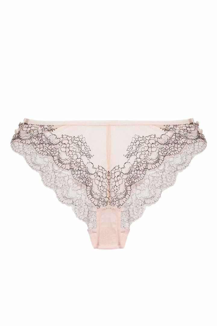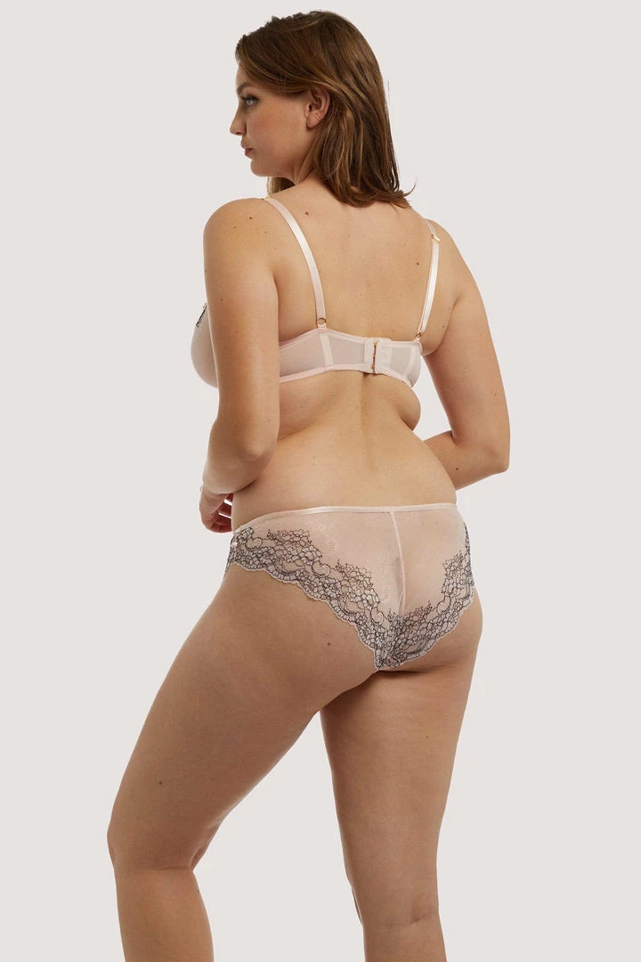 Feel flirty in our Jenny Graphic Lace Blush Brief. Crafted from pale blush mesh, finished with an overlay of lace to give you the ultimate wow factor. Pair with our matching Bra and Suspender for the complete underwear set of dreams.