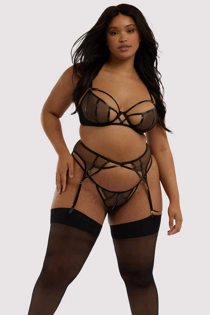 The Kelly set is a stylishly sexy addition to your lingerie collection. Featuring mesh panels and PVC binding detail for a seductive look and feel. Pair with the matching brief and bra to complete the look.