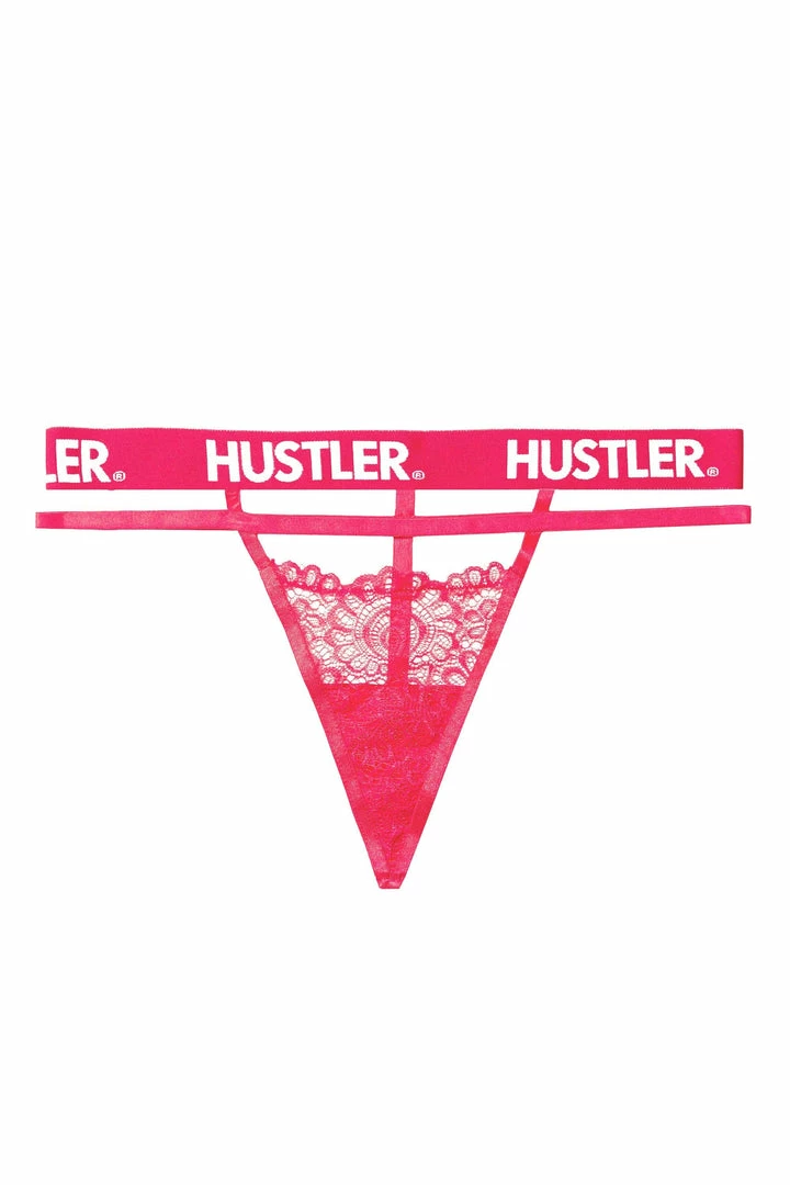 Feel heavenly in our Hot Pink Hustler branded Lace Thong. Made of flirty floral lace and finished with an elasticated banded waist with Hustler branding to give it a preppy look! Keep it cheeky with the thong finish in the back…Pair it with the matching Lace Bra for the full finish.