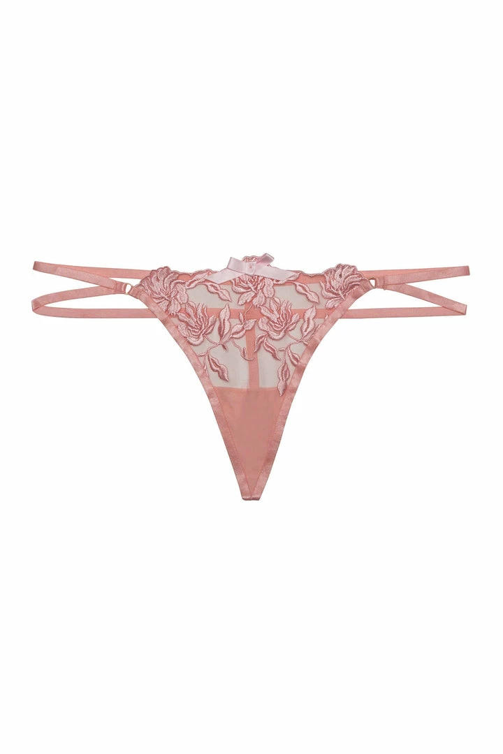 A must-have in every seductress’ lingerie drawer. The Mia thong mixes simplicity with sexuality, with embroidered lace and harness straps over the hips.