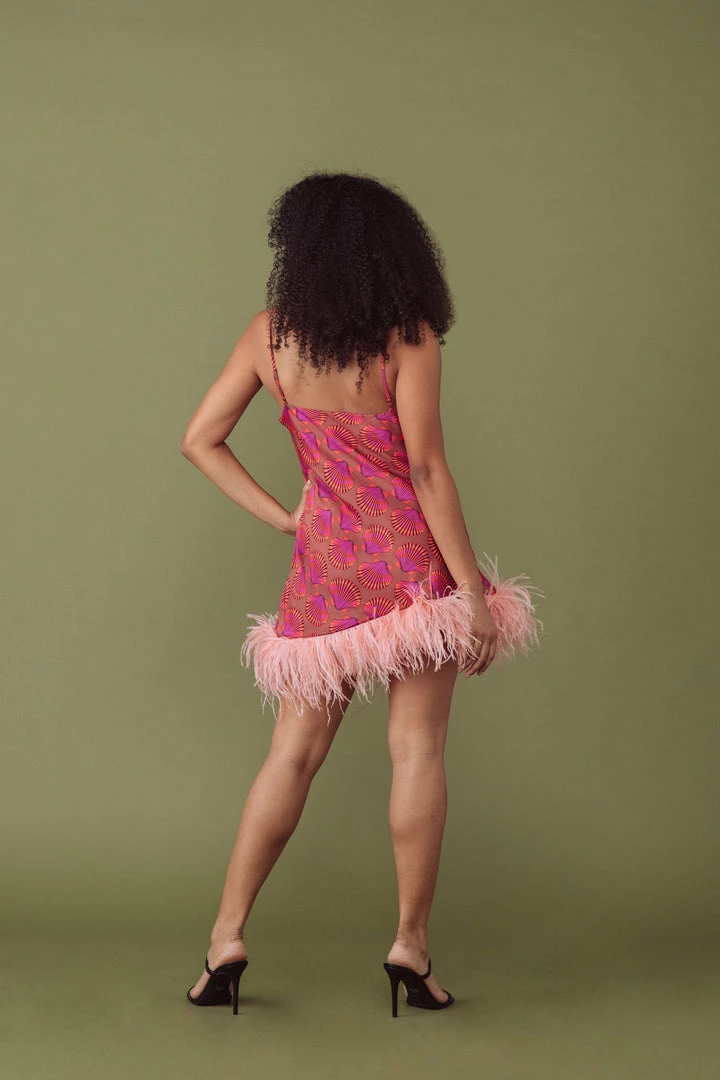 Embody elegance, comfort and style in this Kilo Brava dress. Combining a gorgeous shell print and pink feather detail creating a dynamic, textured look. What’s not to love?