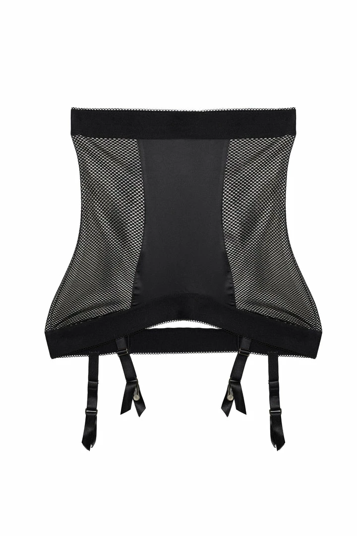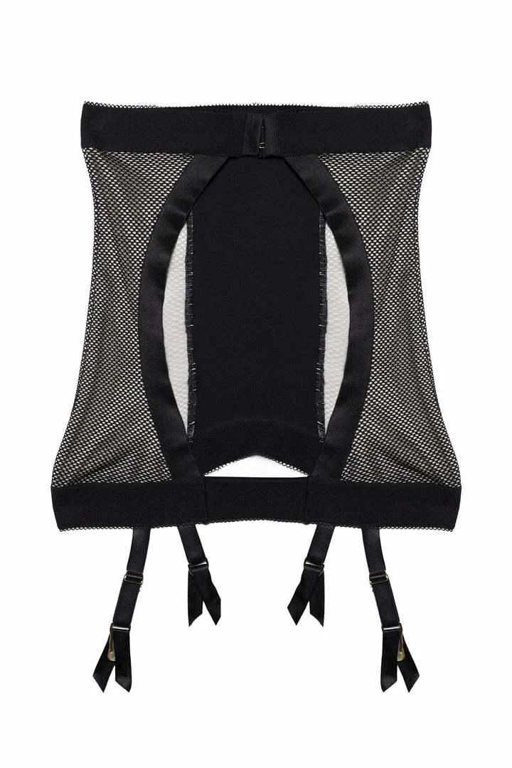Strap up in our Vidal Black Fishnet Suspender Belt, this Suspender Belt features fishnet with black satin panels. The waist is elasticated and the four suspender straps are adjustable to ensure the perfect fit! Match with the Vidal Bra and Brief for the full finish.
