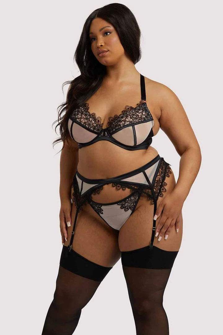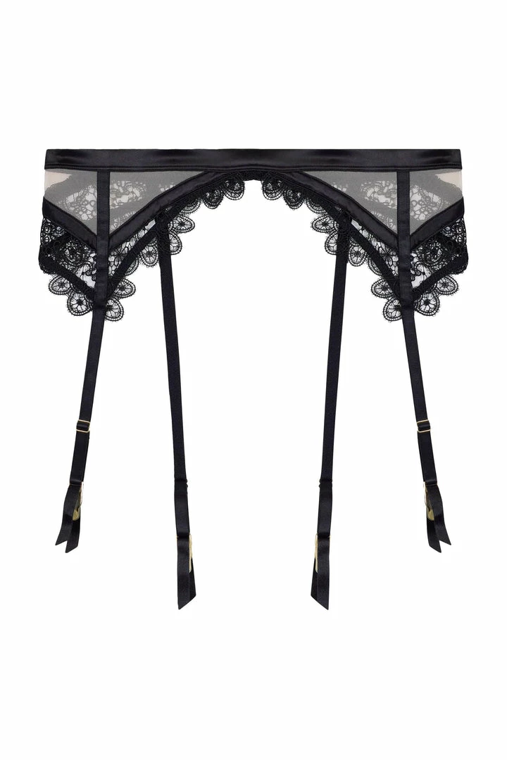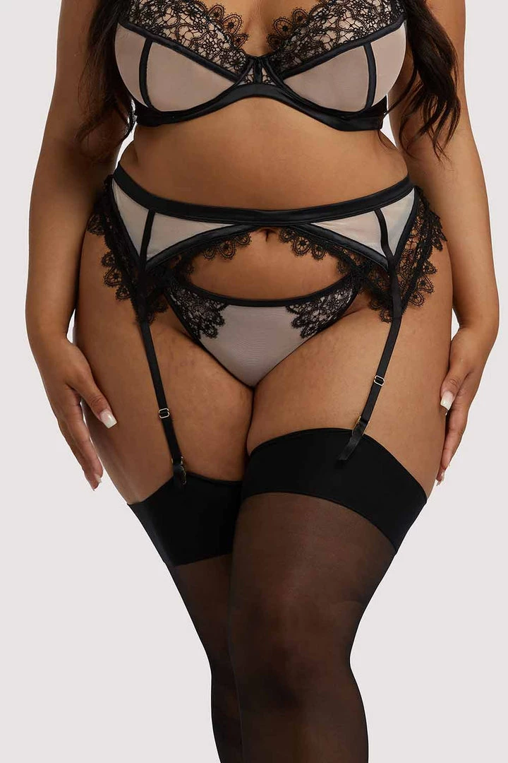 Make a stunning entrance in the Anaise suspender with a sheer peach mesh front and soft lace black detailing. Finished with satin trim, style with the matching lingerie for a set like no other.