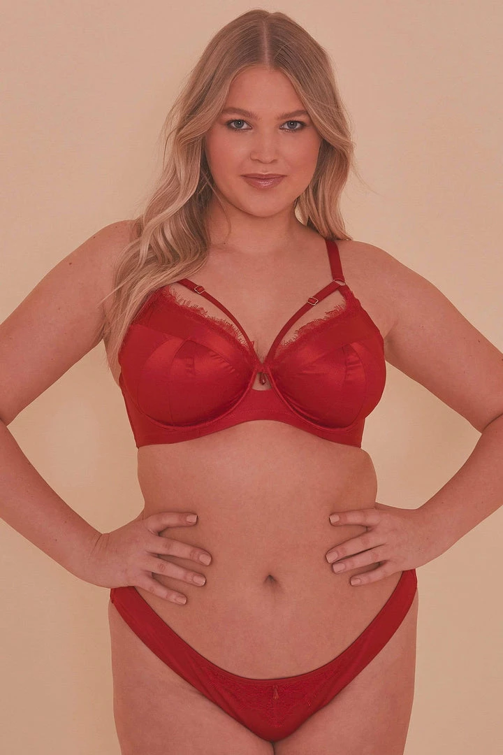 Elegance meets sex-appeal – the Caroline brief is all business in the front, and party in the back! Eyelash lace sets the mood, while the peek-a-boo back feature adds a tantalising effect.