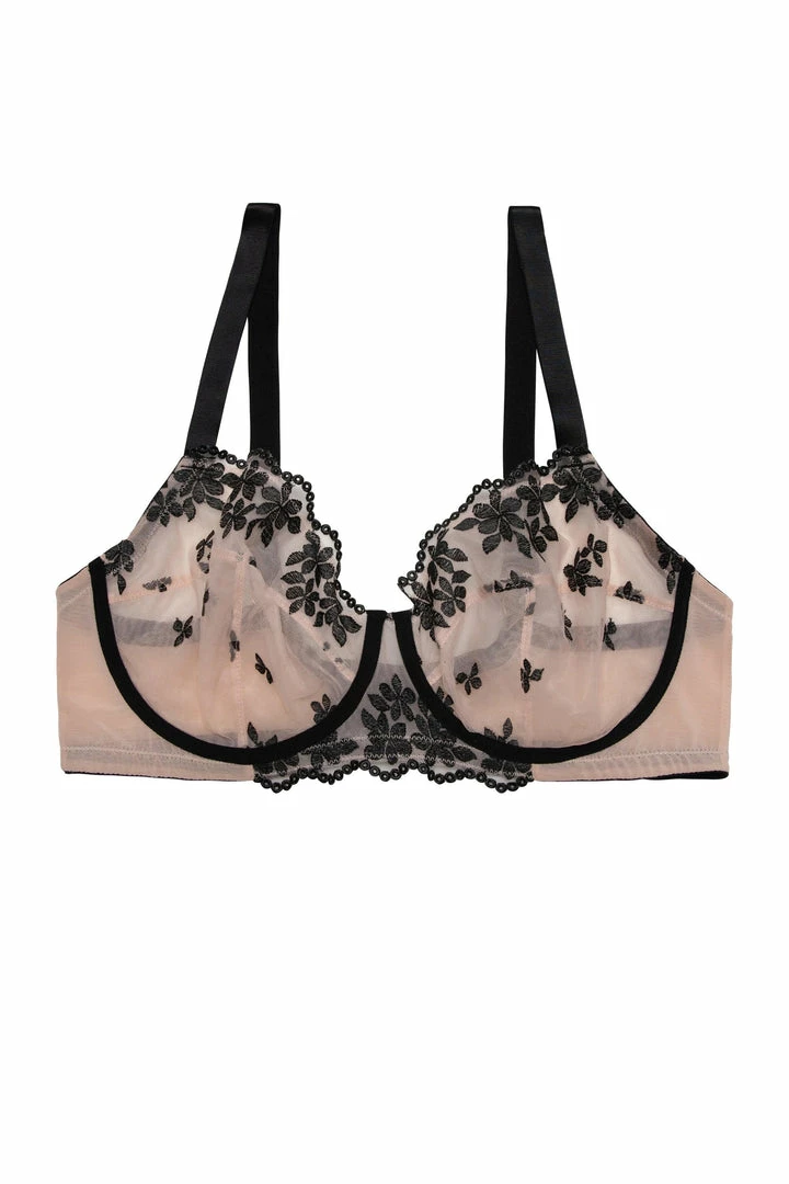The Evie Bra has been designed to take pretty underwear to a whole new level! With stunning floral embroidered lace placed over sheer mesh fabric showing you a little of what’s beneath. Complete the look with the matching brief and suspender belt.