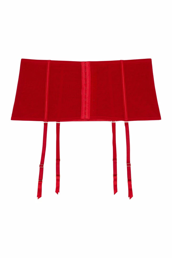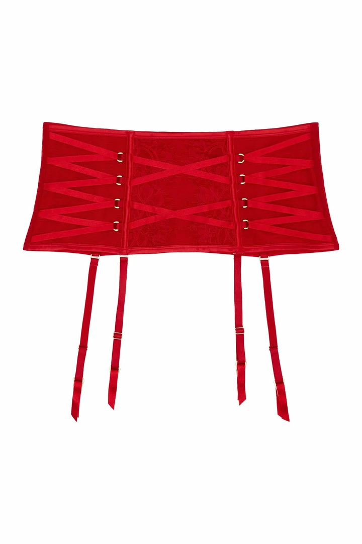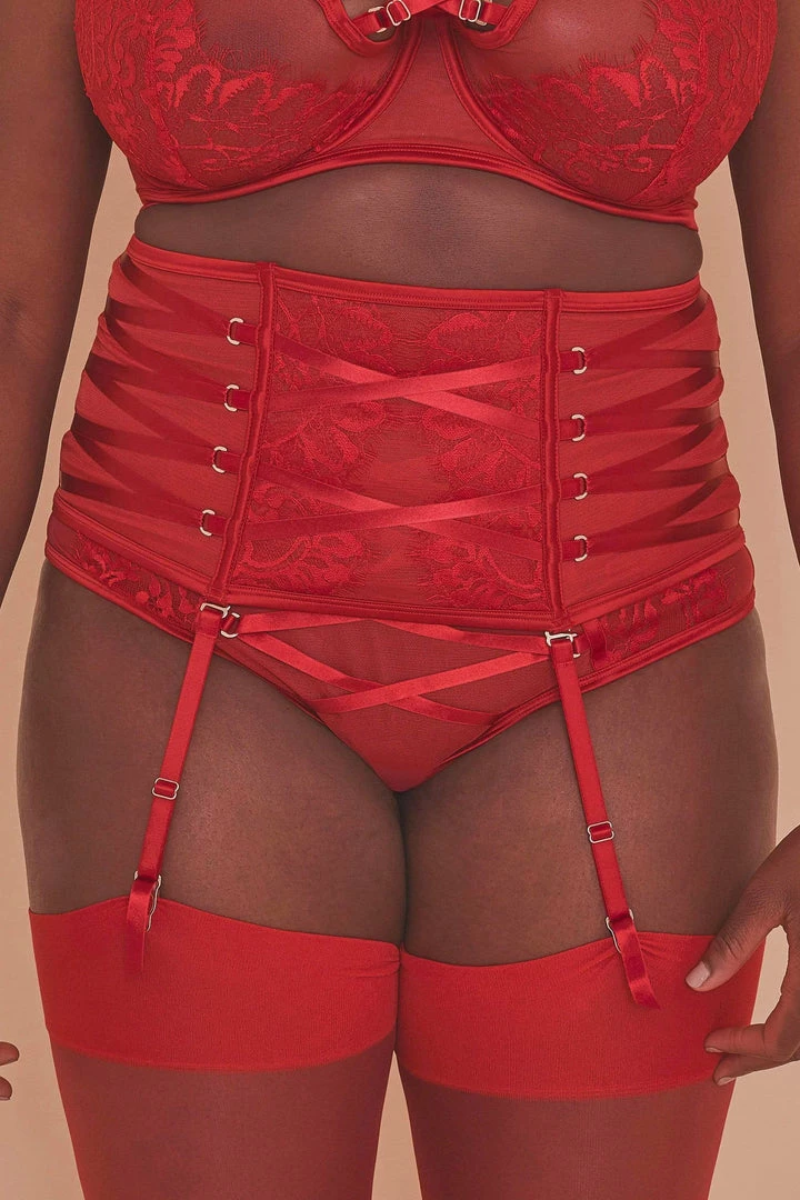 The red lace up waspie is delightfully devilish. Accompanied by the high waist knicker and the high apex bra, what’s not to love?