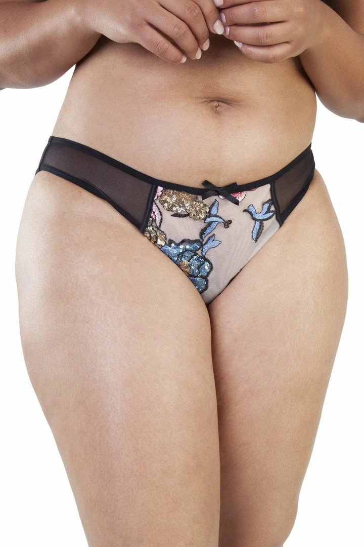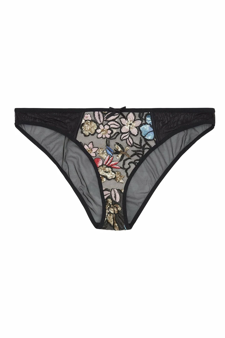 Nothing says fun like our sparkly Sequin brief! The brief is adorned with a gorgeous floral and sequin cream lace panel at the centre and strong black mesh at the sides and back to hug and smooth your curves.