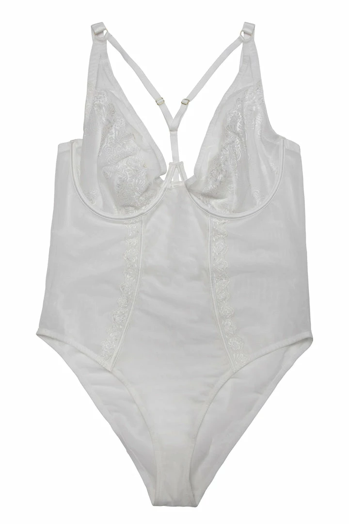 The Leslie sheer mesh bodysuit has harness detailing along with delicate lace making it the perfect style to let out your flirtatious side.