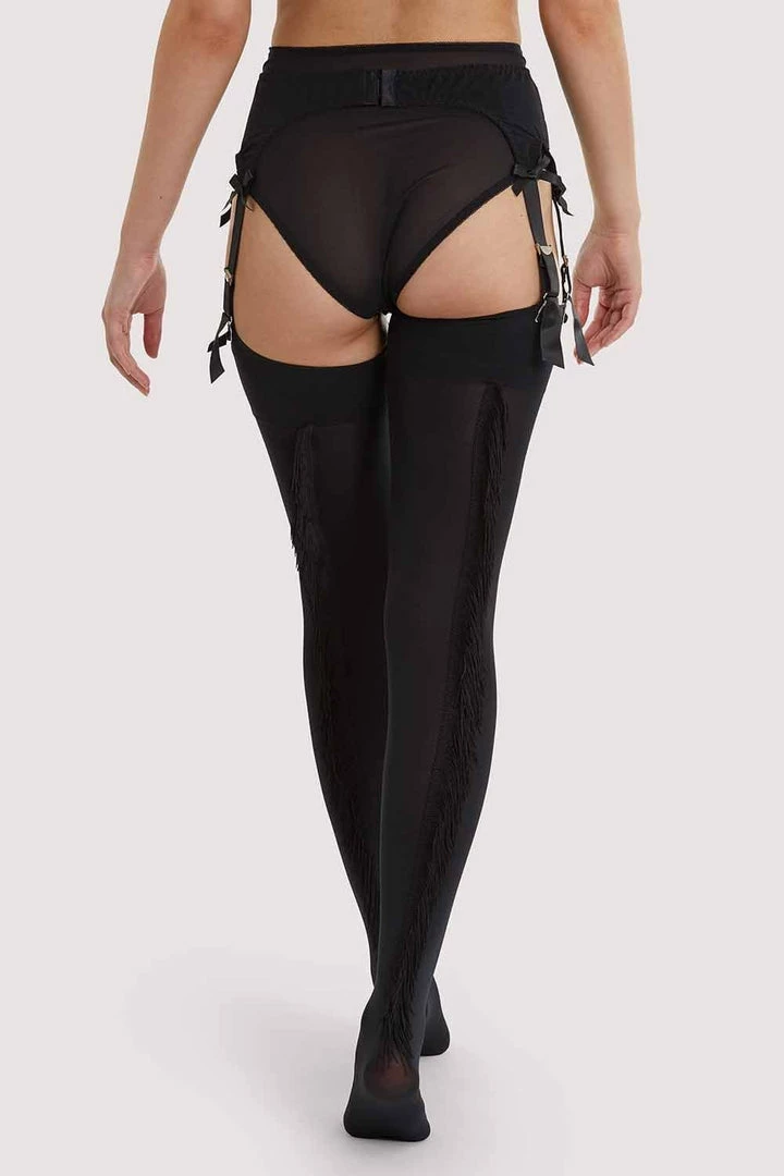 Unique, glam and fun, our fringed stockings are fabulous. Turn heads with a quirky fringed seam detail at the back that will sway as you strut.