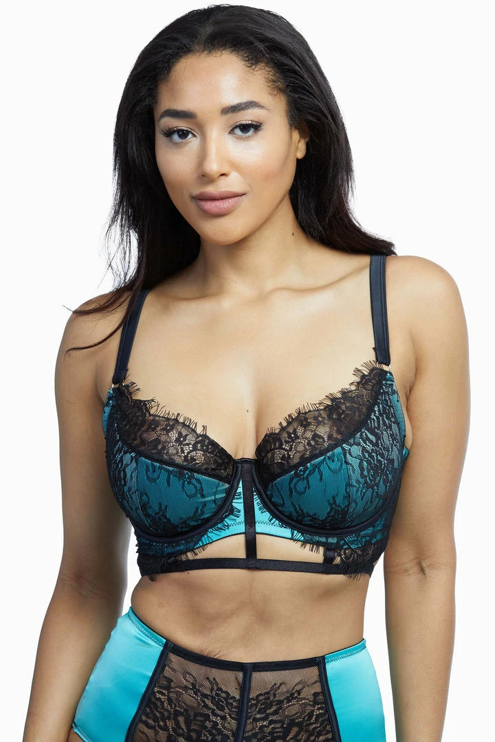 Teal is the new black. Start layering up this season as the eye lash lace stands bold, whilst the wired, padded cups give you that lift in life. The cradle harness brings a stylish sexy without any of the effort.