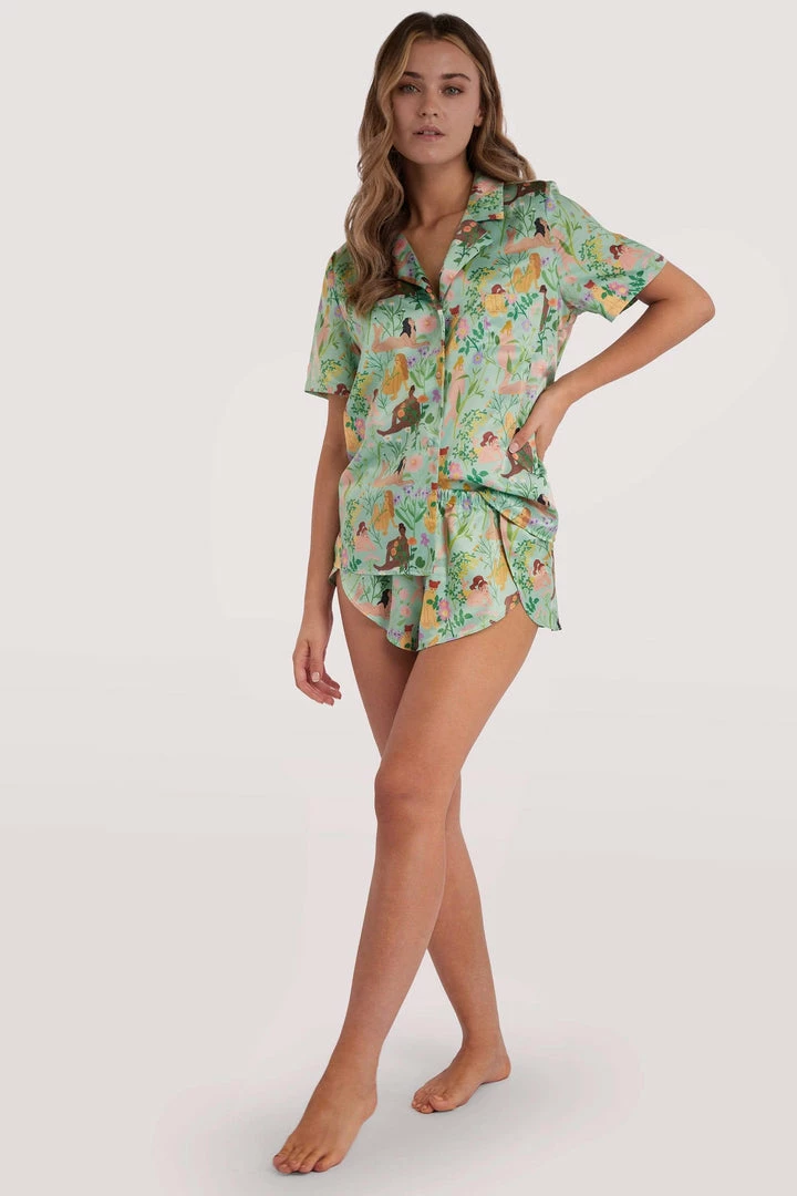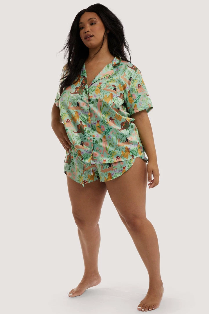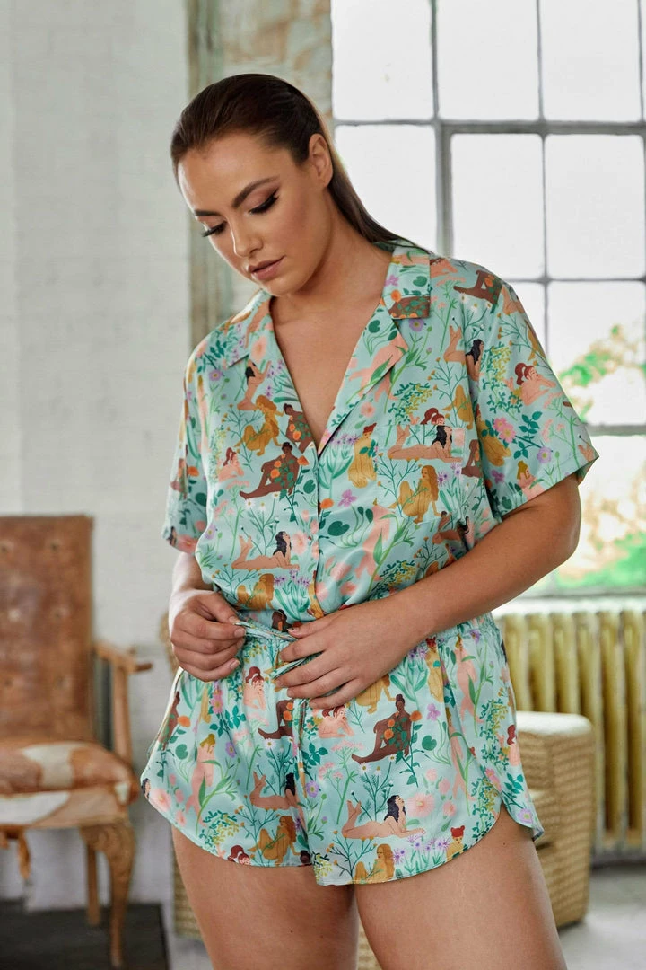 Playful Promises Nightwear Bodil Jane Recycled Nudes & Flowers Satin Short