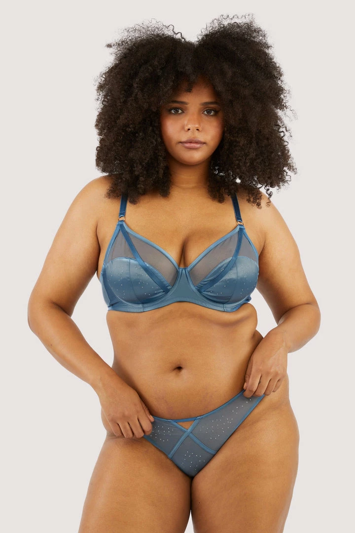 Are you ready to be dazzled in the OLYMPIA High Leg Brief? Storm Grey mesh scattered with dazzling diamantes that will make you shine, with a cutout centre for added sex appeal. Pair tthis high leg style with our matching waspie and bra for a sparkling full set.
