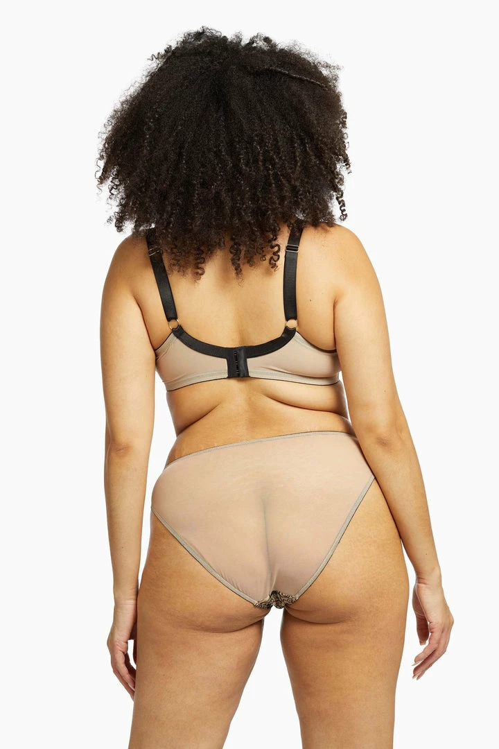Find yourself in a floral wonderland in the Katy set! Pink roses are embroidered over a cream-coloured mesh, with abstract black embroidery over the cups. The straps are finished in sleek black satin to bring a modern look to this otherwise classically feminine set.