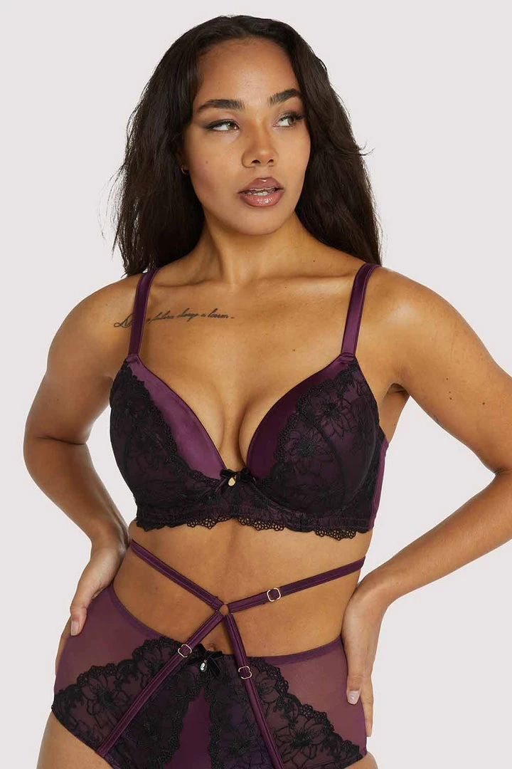 Dinner with wine? Why not pair dessert with the Muriel set, encased in rich red wine satin, corded floral lace mesh and the unique addition of a cameo charm in the centre.