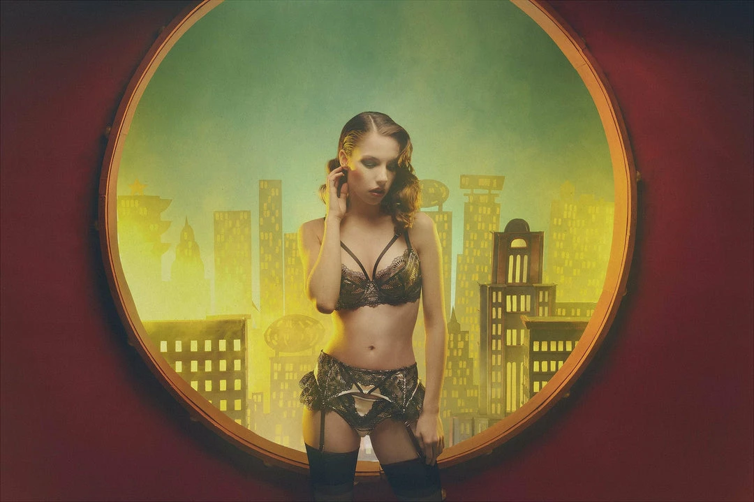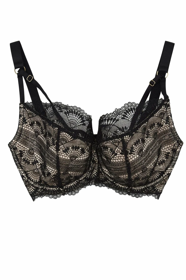 Ysabel is the perfect lingerie-drawer staple! Peach satin is completely overlain with black fan lace.