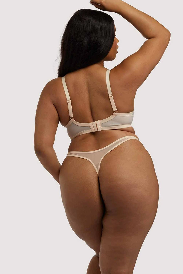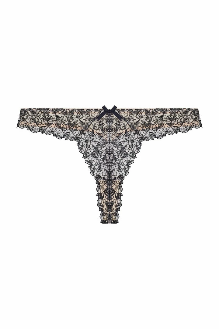 You’ll look blooming lovely in this. The Skull & Roses thong features delicate rose embroidery on a light nude tulle and a black bow for a perfect finishing touch.