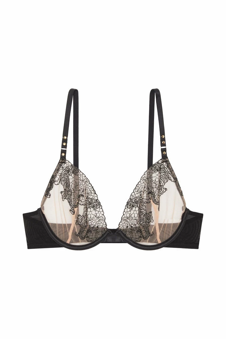 Grrr! Tiger is back… this time in Peach and Black. The bra features soft peach sheer mesh embroidered with black tigers and floral details on the cups. Match with the Tiger Peach and Black briefs for the ultimate set.