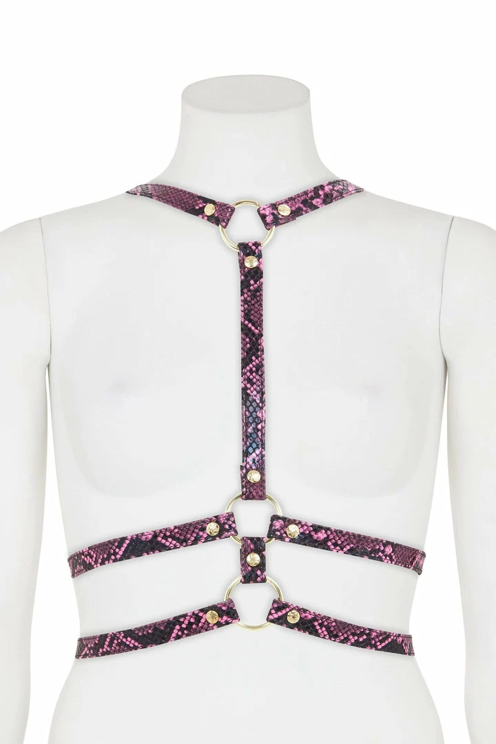 Add a touch of ssssexy sophistication with this faux snakeskin chest harness.