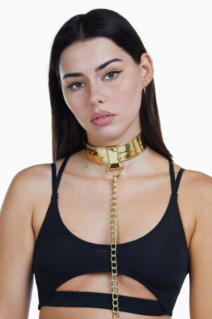 Take control and go for gold with this luxurious gold collar and lead.